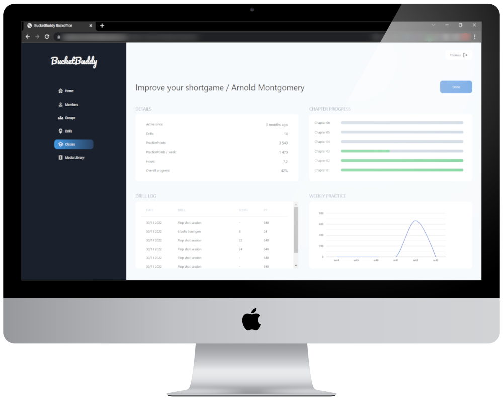 BucketBuddy Academy lets you create drills, organize your practice groups and build customized classes for your different clients. You also have access to detailed data for each student - how much they practice? How they perform in the various drills? And much more. This allows you to set up a practice plan in between lessons and have them focus on relevant techniques and drills. You may also set up fully digital classes to reach a broader audience.